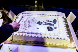 Beide Preise üppigst dotiert – da weiß man, wo die hart ersparten Mitgliedbeiträge versickern! – kein Wunder, dass die Schecks mit Begeisterung entgegen genommen wurden. Schöner allerdings die kleinen Sondermann Tonfiguren nach Bernd Pfarr, der an diesem denkwürdigen Abend 60 Jahre alt geworden wäre.